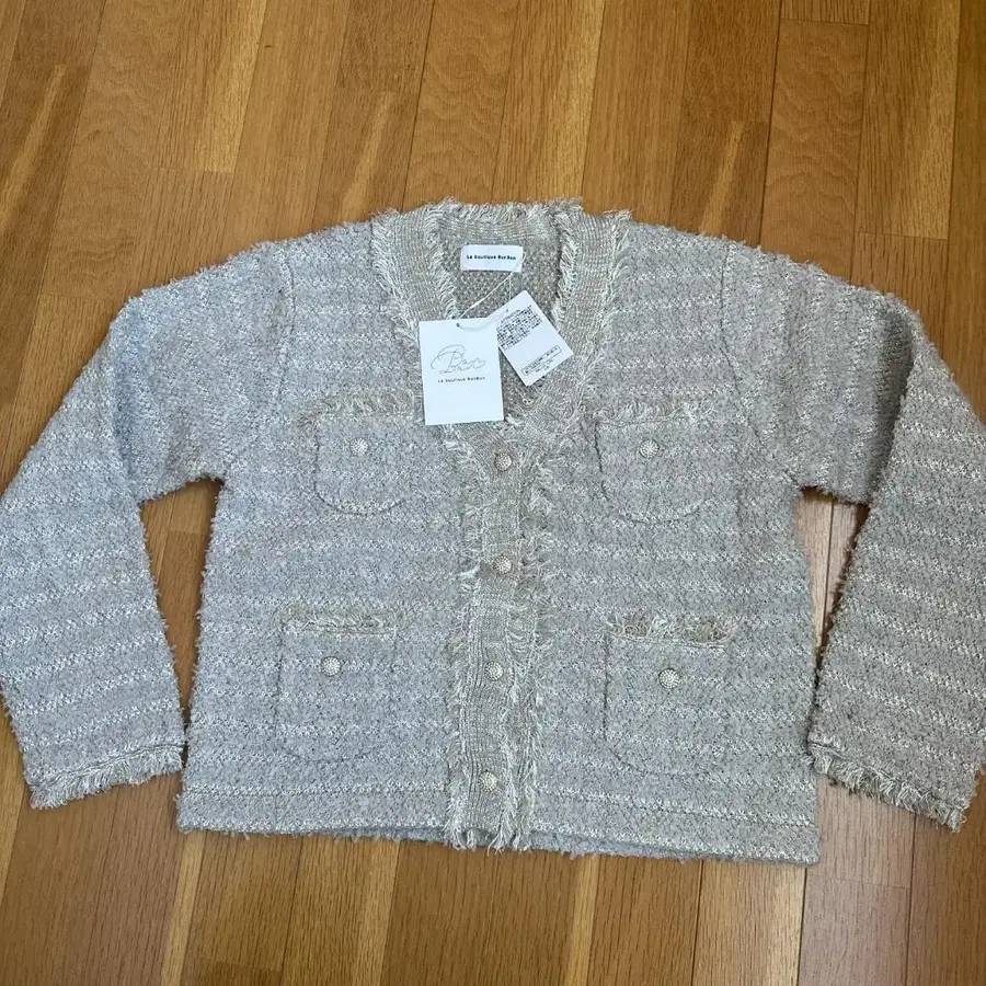 러브티크 폼폼 택 포함 팬시 트위드 니트 가디건