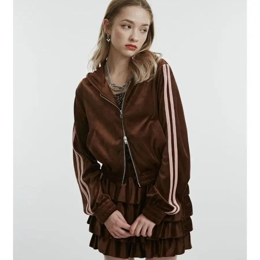 jouetie 벨로아 셋업 zip 후디 스커트 브라운