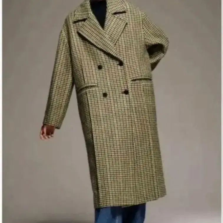 자라 체크 무늬 울 믹스 핸드투스 코트