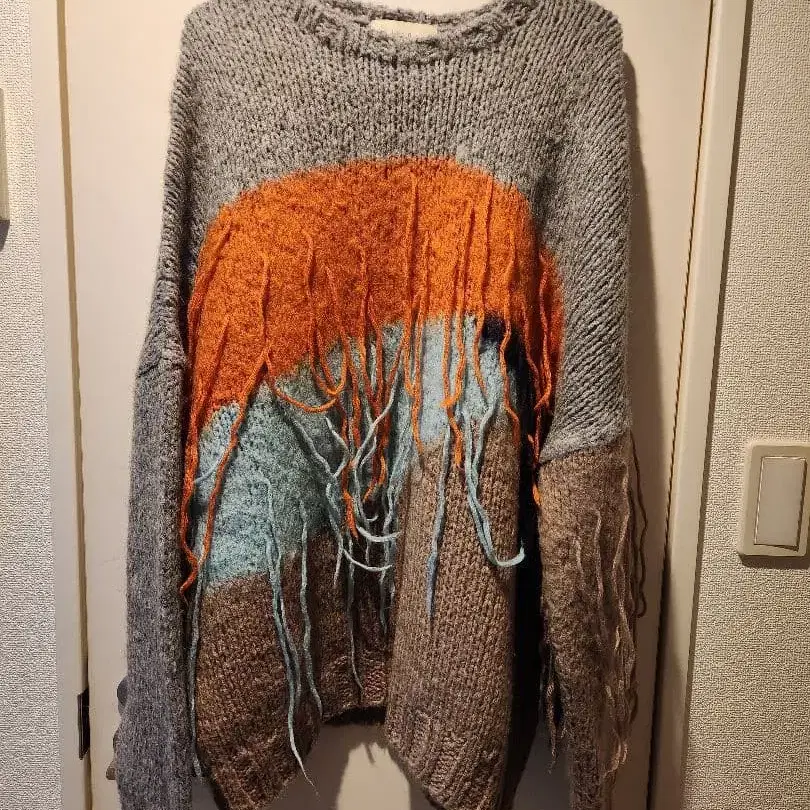 지에다의 프린지 니트입니다. 디자인성이 뛰어난 니트로, 다가오는 계절에 활약할 것입니다. 평소에는 접어서 보관하고 있습니다. 급전이 필요하여 판매합니다. 프린지 디자인의 아트 니트 스웨터, 캐주얼 스타일에 최적입니다. - 색상: 그레이/오렌지/파랑 - 디자인: 프린지 아트 니트 - 소재: 니트 - 스타일: 캐주얼 - 소매: 긴팔 방문해 주셔서 감사합니다.
