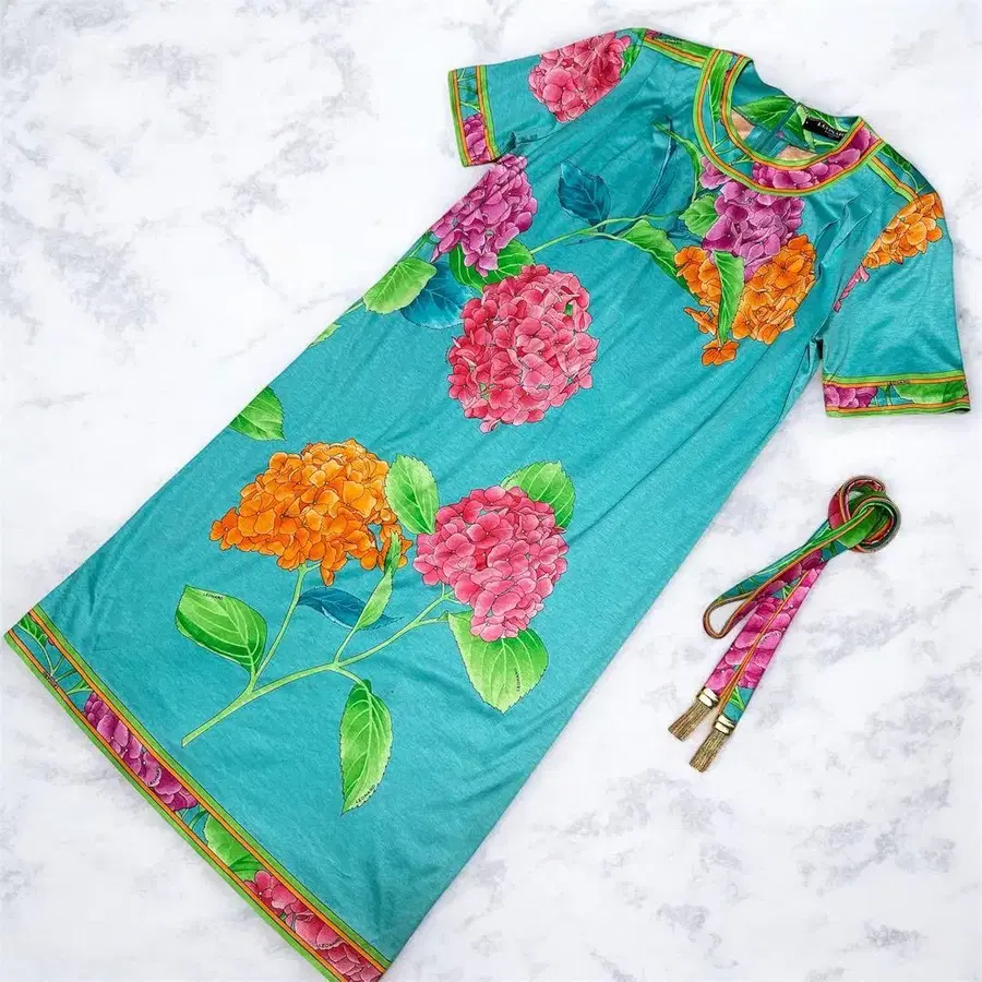 LEONARD 꽃무늬 원피스 벨트 포함 면 100% M