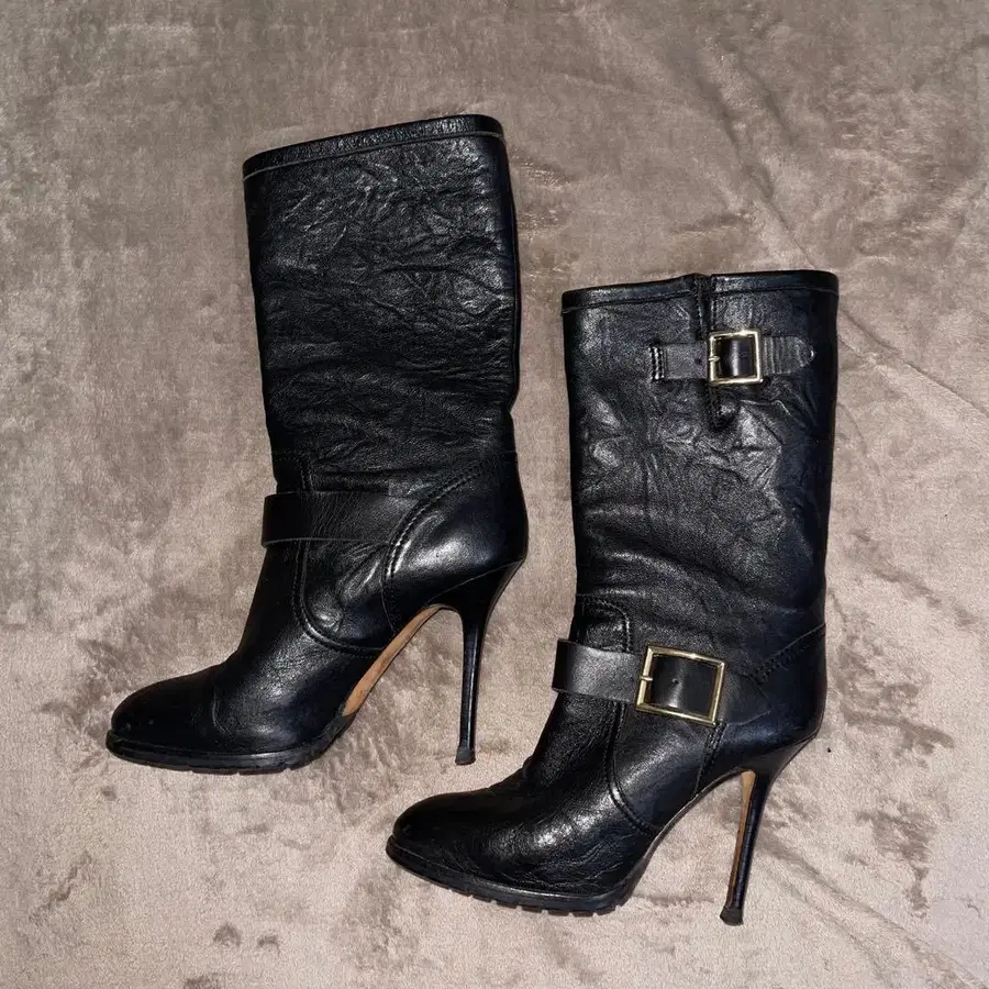 지미추 가렌 가죽 벨트 주름 가공 숏부츠 블랙 38
