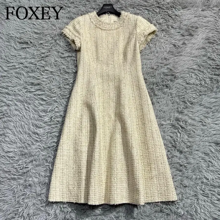 표정이 풍부한 코튼 트위드 소재를 사용한, 〈FOXEY BOUTIQUE〉의 고급스러운 플레어 원피스.