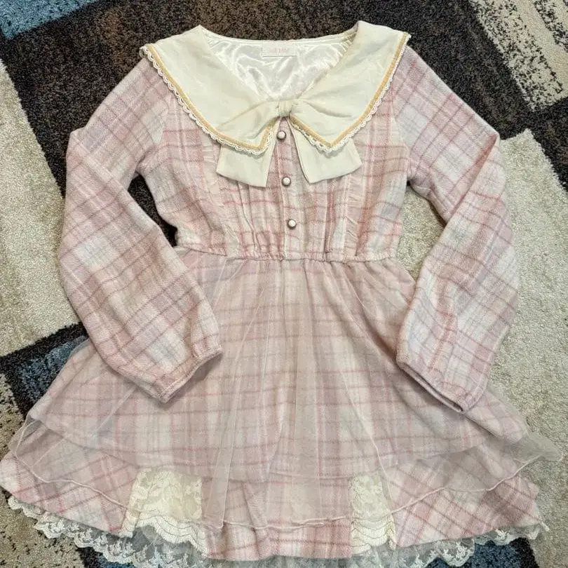 커다란 옷깃에 리본이 달린 체크 무늬 원피스풍 상의와 레이스가 달린 스커트 세트입니다. [상의] 기장 63cm + 레이스 5cm 허리 31cm (밴딩) 어깨 너비 34cm [스커트] 기장 37cm + 레이스 5cm 허리 31cm (뒷면 밴딩) 안감은 치마바지로 되어 있습니다. 원단은 부드럽고 따뜻한 원단입니다. 원단의 특성상 약간의 보풀(사용감)이 있지만 신경 쓰일 정도는 아니라고 생각합니다. 스커트는 단품으로도 착용하실 수 있습니다. 안감은 치마바지로 되어 있습니다. 중고품이라는 점을 이해해 주시는 분의 구매를 기다립니다.