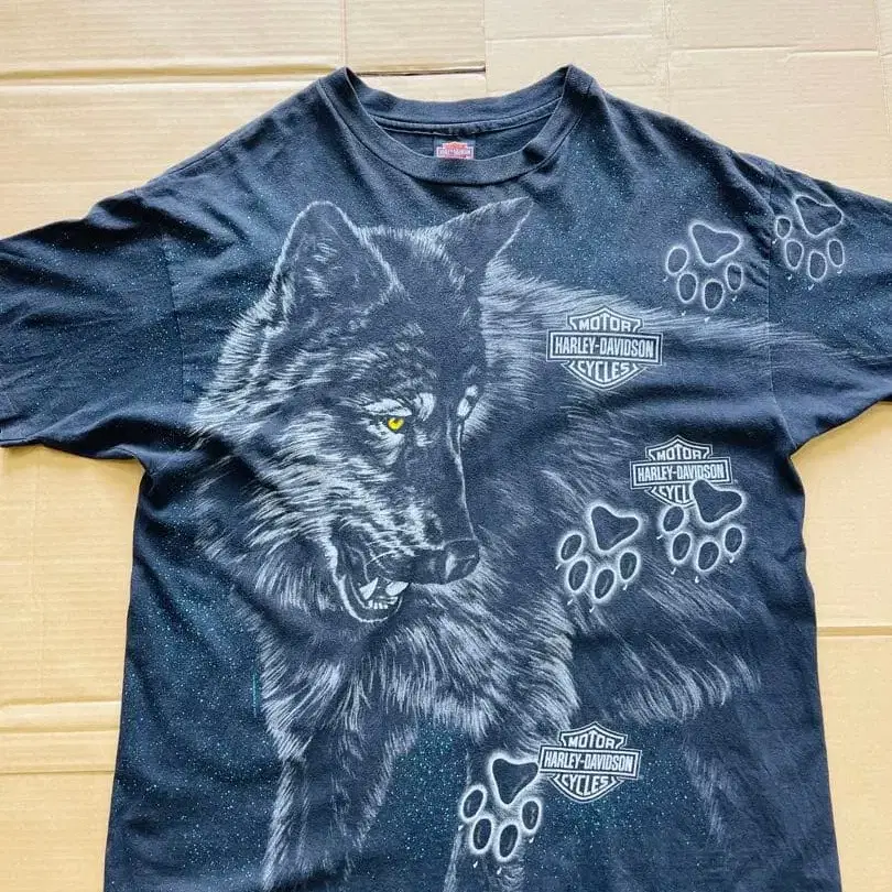 레어 USA제 90s 빈티지 할리데이비슨 울프 t셔츠