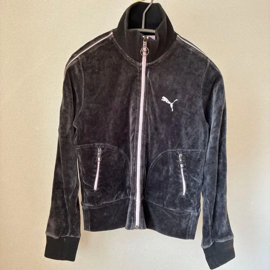 PUMA 차콜 그레이 벨로아 집업 후드티 L
