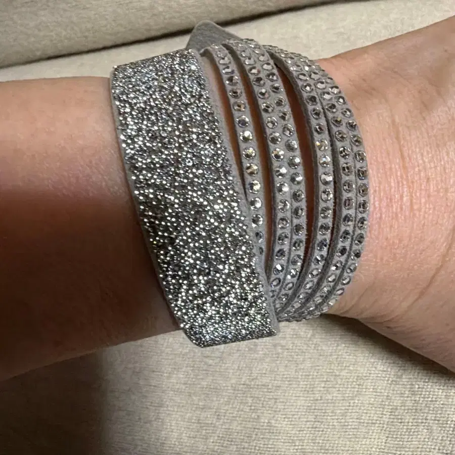 • 미사용 SWAROVSKI 팔찌 4연 가죽 스톤 그레이