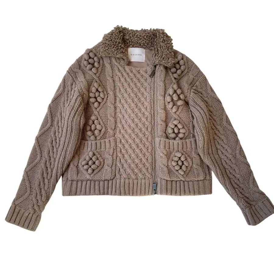 가레나 케이블 지퍼 니트 폼폼 가디건 울 혼방 복슬복슬