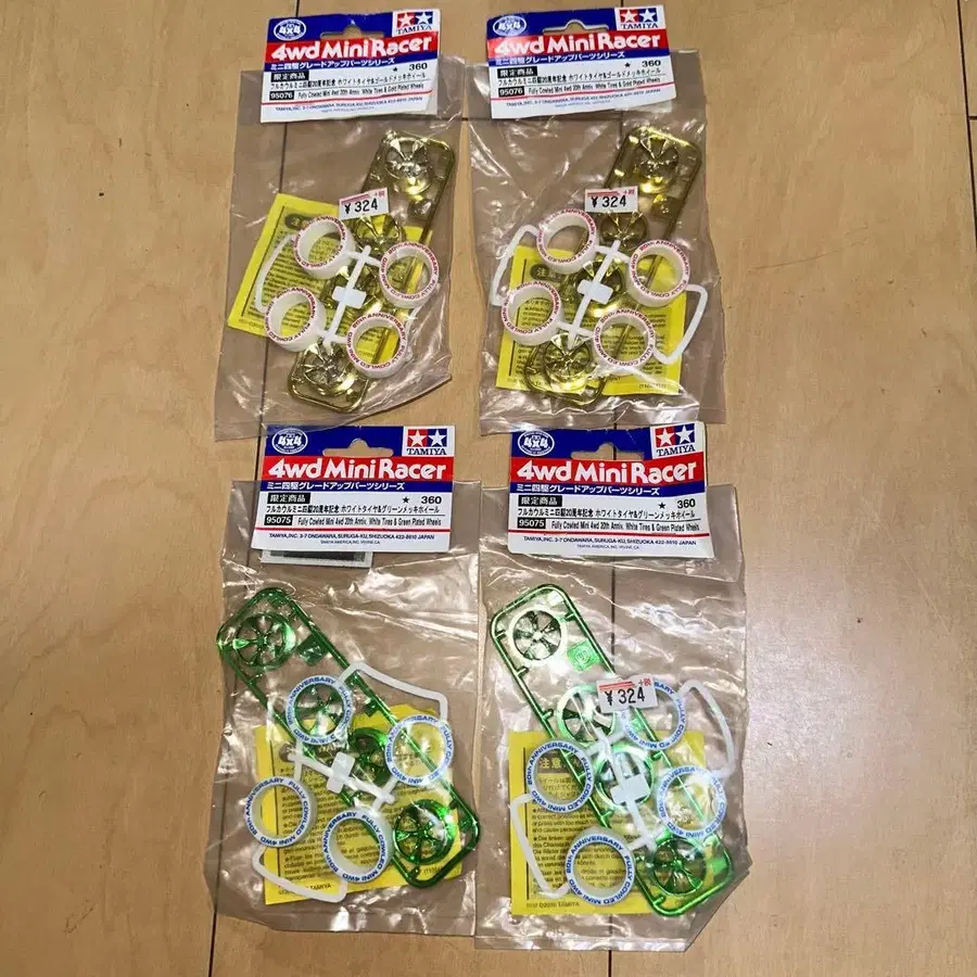 미니 사륜구동 타미야 풀 카울 미니 사륜구동 20주년 기념 화이트 타이어 그린 도금 휠 x 2 골드 도금 휠 x 2