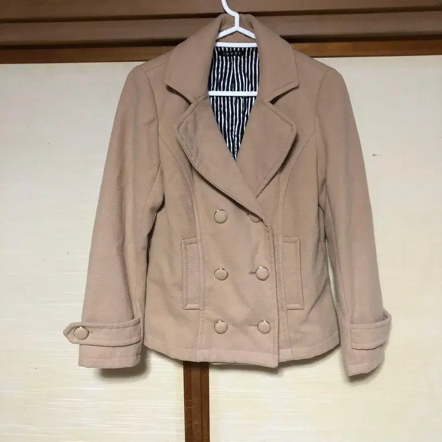 베이지 더블 브레스트 피 코트