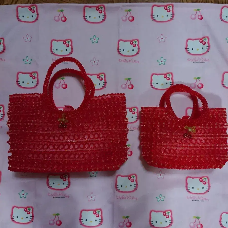 체리 비즈 백 대소 2종 세트