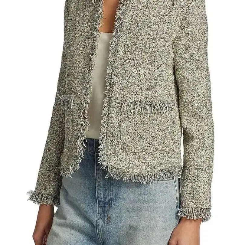 [ 새상품 ] 케이트 스페이드 메탈릭 트위드 자켓 실버 프린지