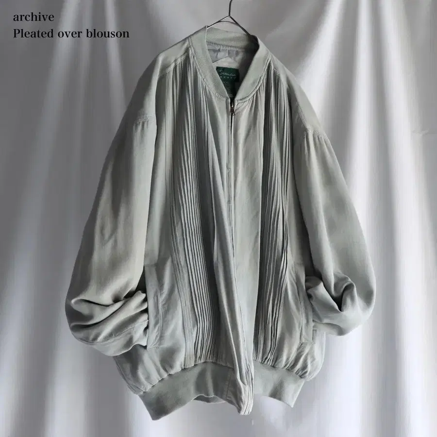 고급 실크를 넉넉하게 사용한 90년대 아카이브 그레이 블루종. 부드러운 광택과 유연한 드레이프가 만들어내는 독특한 드롭감이 아름답고 조용한 존재감을 발산합니다.