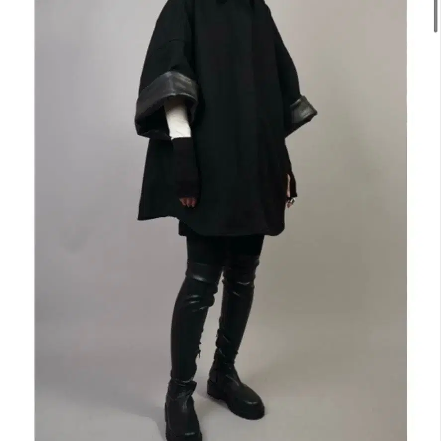 helk 헬크 인조 가죽 슬리브 코트 블랙