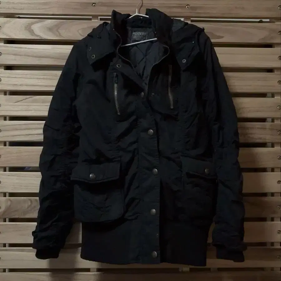 PENDORA 후드 부착 퀼팅 롱 자켓 Y2k 그런지