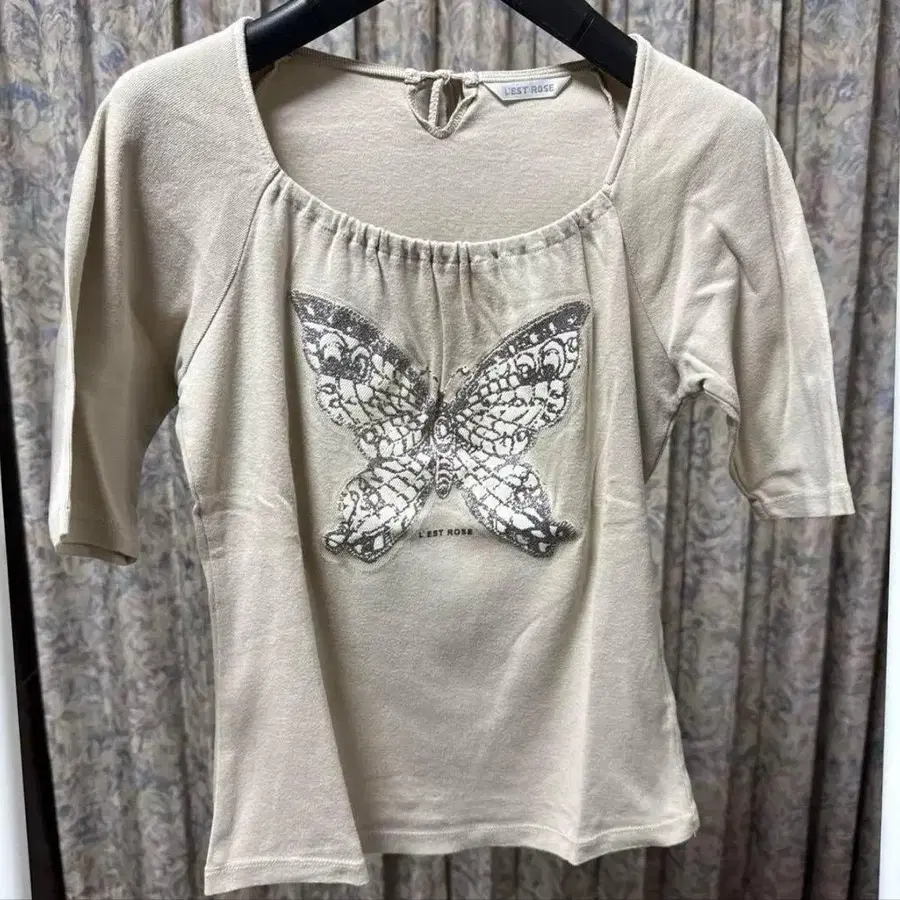 [컨디션 최상] L'EST ROSE 베이지 나비 프린트 티셔츠 M