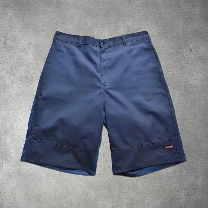 심플한 네이비 색상의 캐주얼 숏팬츠, 백 포켓 포함.