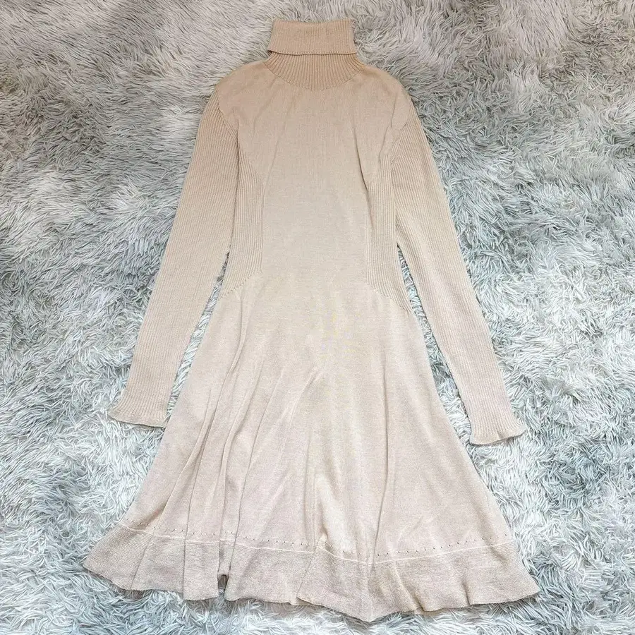여성용 니트 원피스 터틀넥 M 무지 베이지 일본제