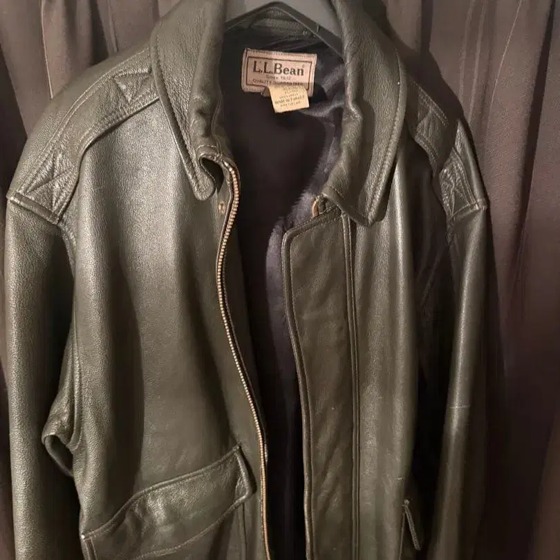 다크 그린 색상의 가죽 소재, 지퍼가 달린 L.L.Bean 자켓입니다. - 브랜드: L.L.Bean - 사이즈: LARGE - 색상: 다크 그린 - 특징: 가죽 소재, 지퍼 있음, 포켓 있음 방문해 주셔서 감사합니다. 색상 - 블랙 계열 가죽 소재 - 소가죽 얼룩, 찢김, 냄새 등 - 없음