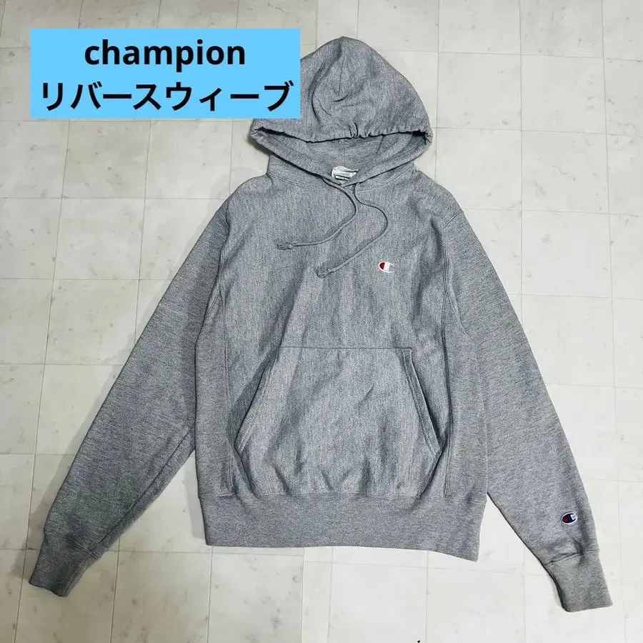 챔피언 리버스 위브 그레이 후드 부착 후드티