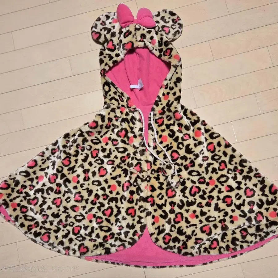 미니 레오파드 무늬 판초 플리스 복슬복슬 귀 달린 디즈니랜드 케이프