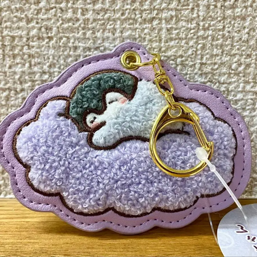 코우펜짱 복슬복슬 사가 자수 키링 보라색