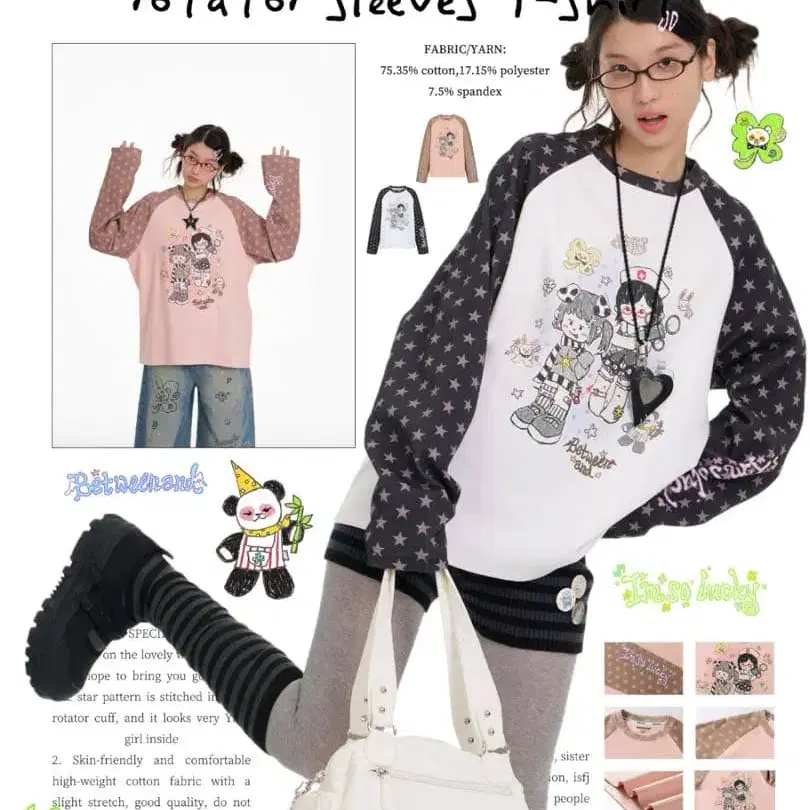 betweenand 롱 T 긴팔 티셔츠 도트 별 패턴 위시코어