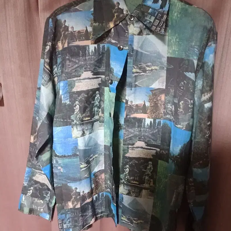 빈티지 J.C.Penny 풍경 프린트 폴리 셔츠 S 사이즈