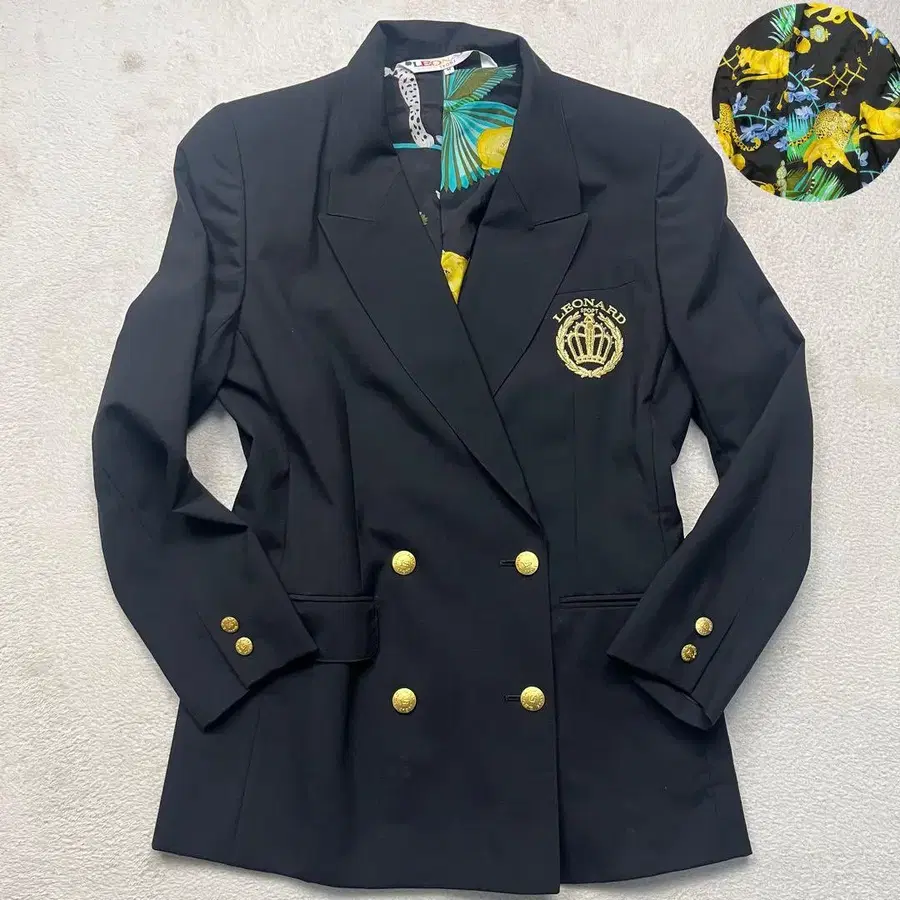 LEONARD 레오나르 자수 골드 버튼 안감 올 패턴 M 사이즈 자켓