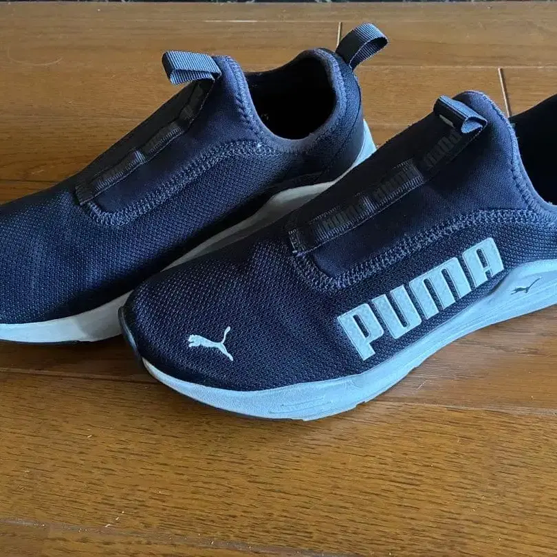 가볍고 쾌적한 슬립온 스타일의 네이비 스니커즈. - 브랜드: Puma - 색상: 네이비 - 디자인: 슬립온 스타일 - 특징: 경량 소재 - 로고: 큰 Puma 로고 - 밑창: 쿠션성 있는 밑창 방문해 주셔서 감사합니다.