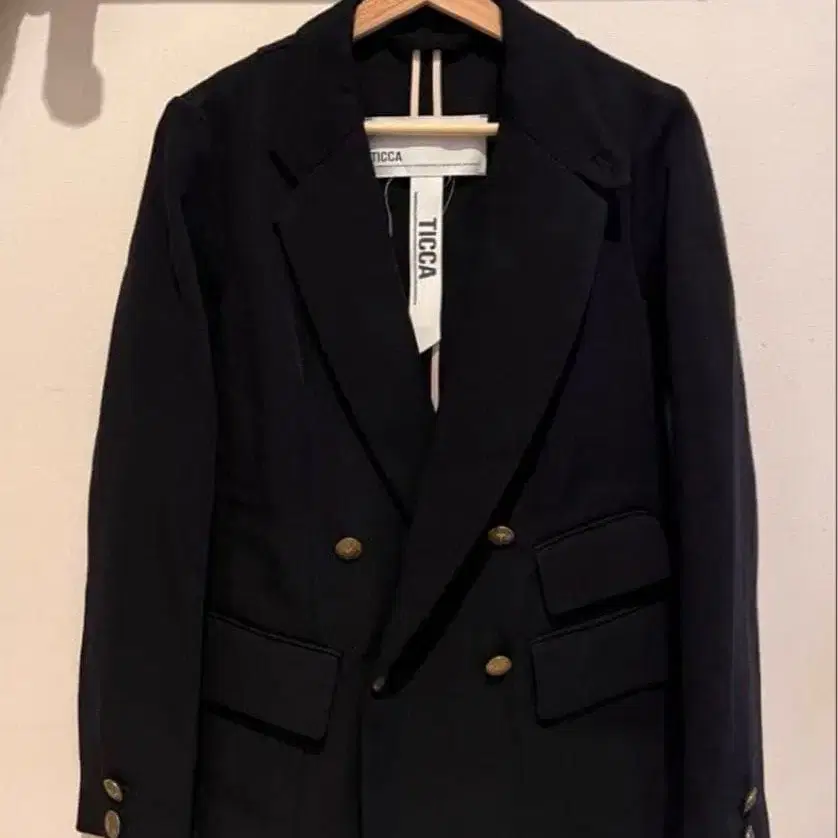 Ticca의 더블 브레스트 울 린넨 골드 버튼 테일러드 자켓/블레이저/네이비 블레이저입니다.