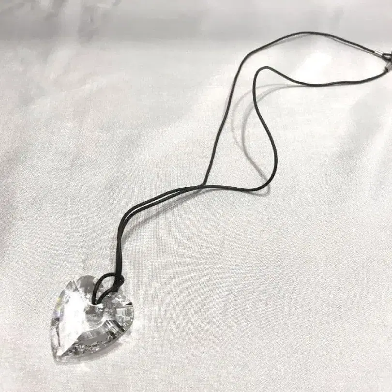 새상품급 스와로브스키 크리스탈 목걸이 하트 모티브 끈 블랙