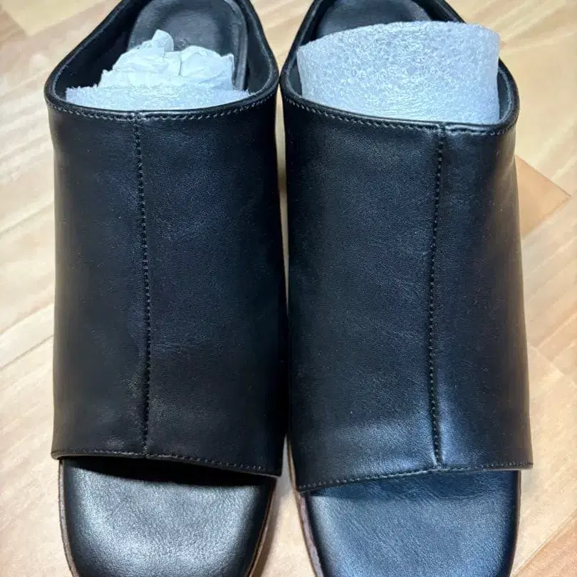 새상품 미사용 블랙 오픈토 샌들 중간 힐