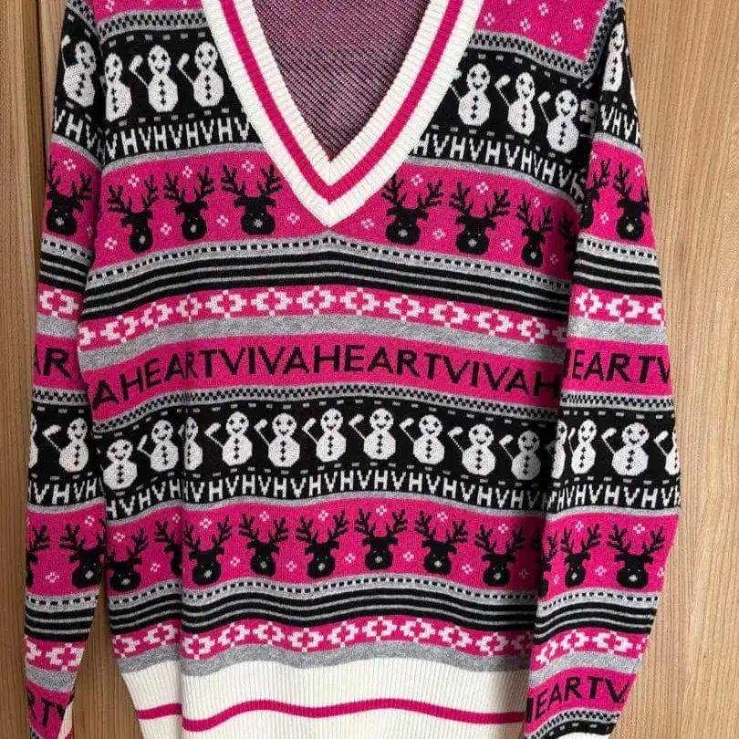 VIVA HEART 눈사람 루돌프 무늬 V넥 스웨터 42
