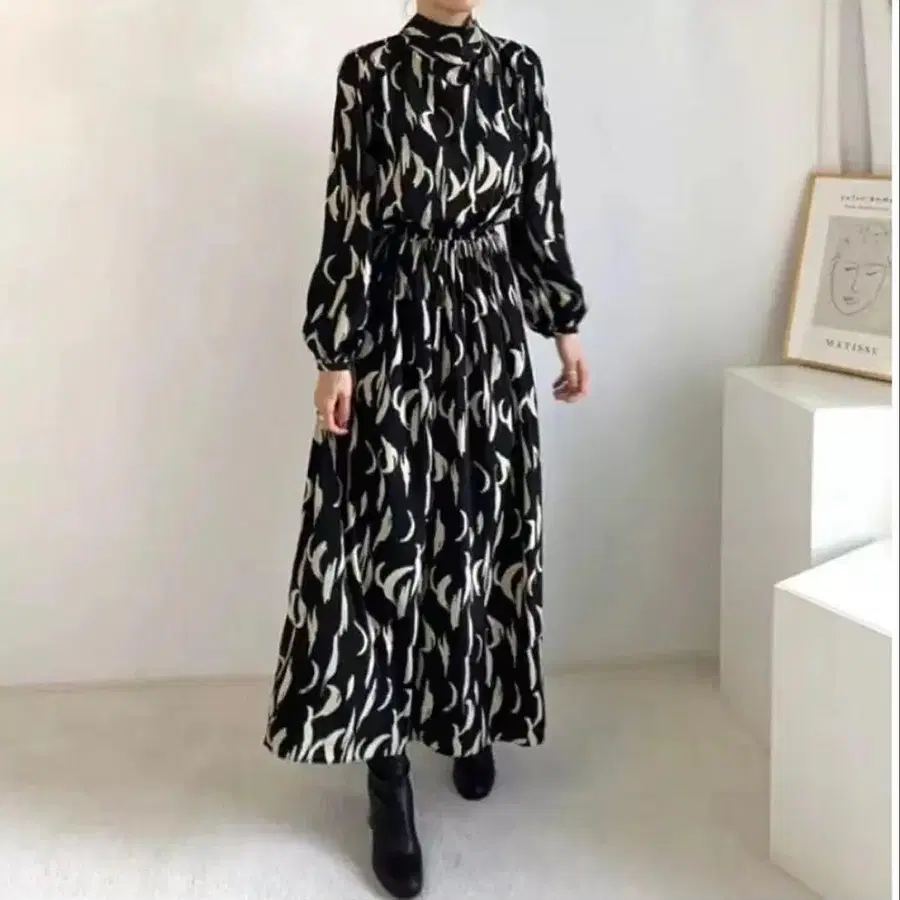 크리스마스 세일! 여성용 롱 원피스 맥시 길이 긴팔 가을/겨울 블랙