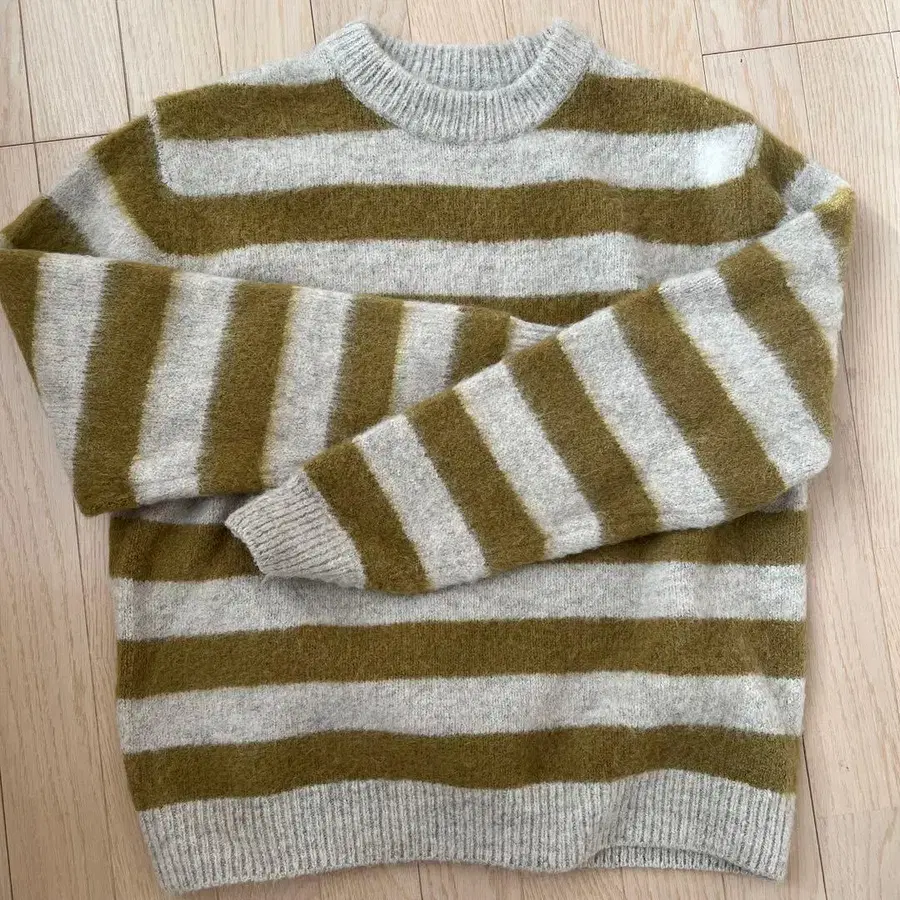 ZARA 올리브 그린 그레이 스트라이프 니트 M
