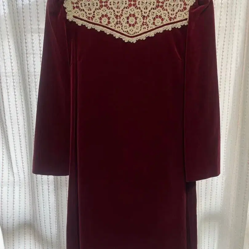 제인 마플 벨벳 레이스 옷깃 원피스 보르도