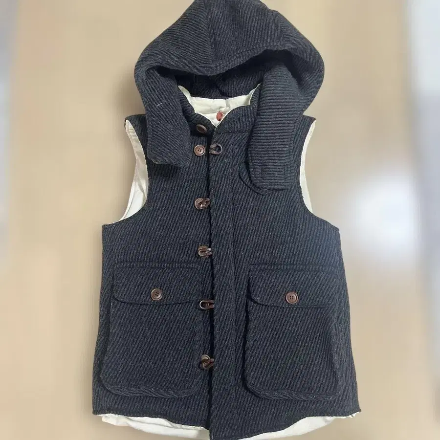 EPoca Uomo 그레이 다운 베스트 후드 부착 M 사이즈