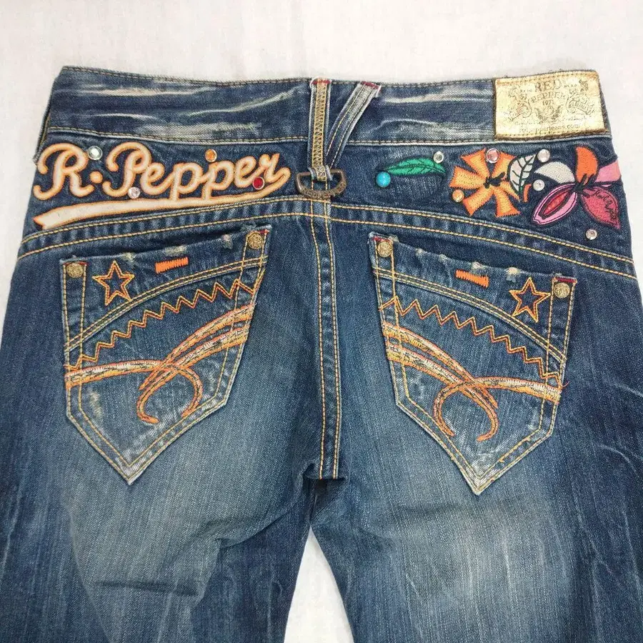 레어!! 레드페퍼 데님 팬츠 y2k 자수 부츠컷 27