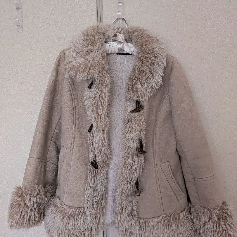 레스트로즈 베이지 인조 모피 무스탕 코트