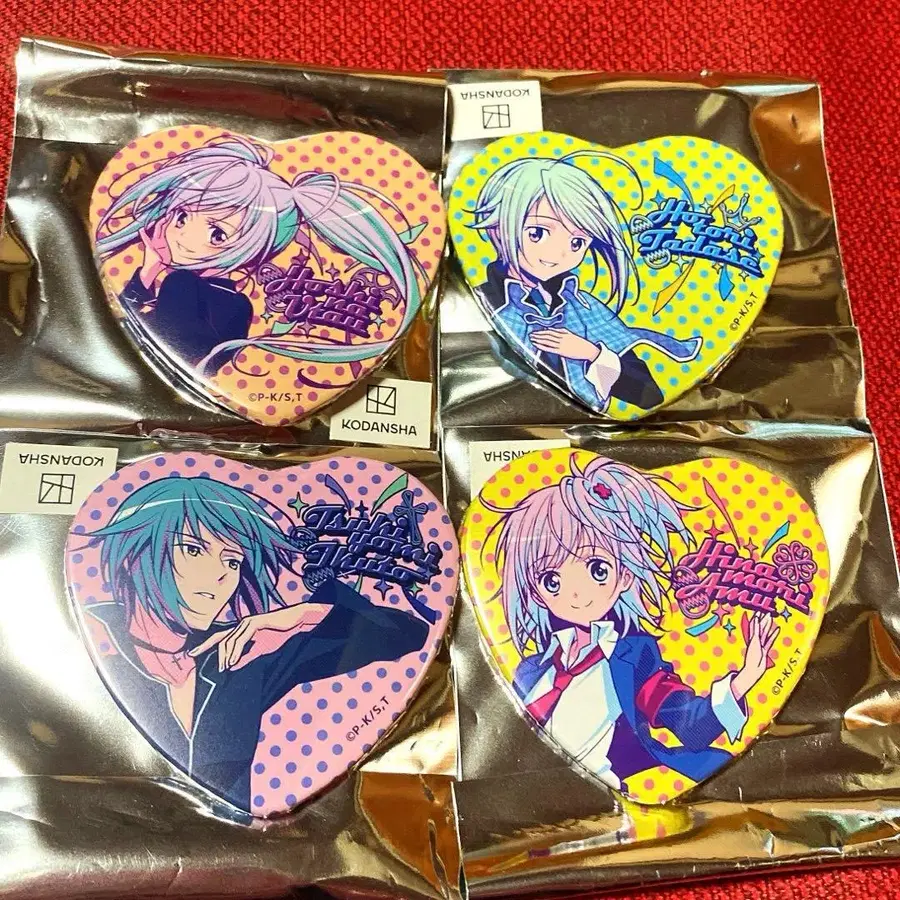 수호캐릭터 트레이딩 하트형 캔뱃지 4개 츠키요미 이쿠토 히나모리 아무 호시나 우타우 사쿠리 유이세 메루카리 택배 미사용 즉시 구매 가능