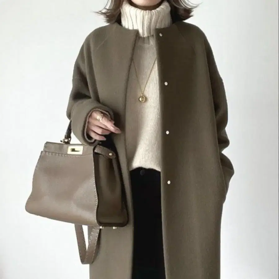 심플 미들 기장 라운드넥 한국 스타일 코트 밀리터리 그린