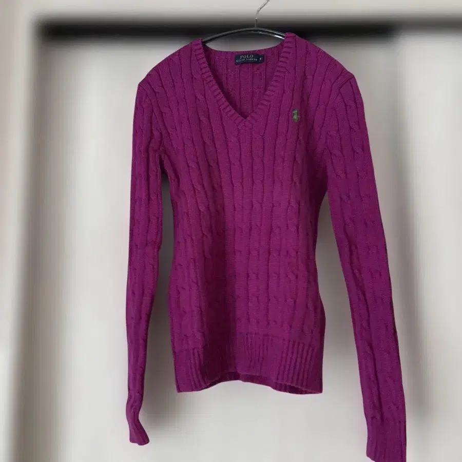 폴로 랄프 로렌 V넥 케이블 니트 스웨터 핑크