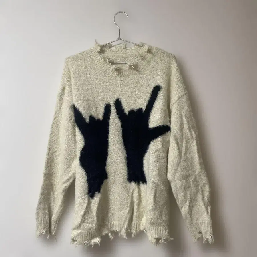 손 모양을 본뜬 유니크한 아이보리 니트 스웨터. - 색상: 아이보리 - 디자인: 손 모양 디자인 - 소재: 복슬복슬한 질감 - 밑단: 프린지 마감 방문해 주셔서 감사합니다. Ninetynine 초기 니트입니다. archive y2k 그런지