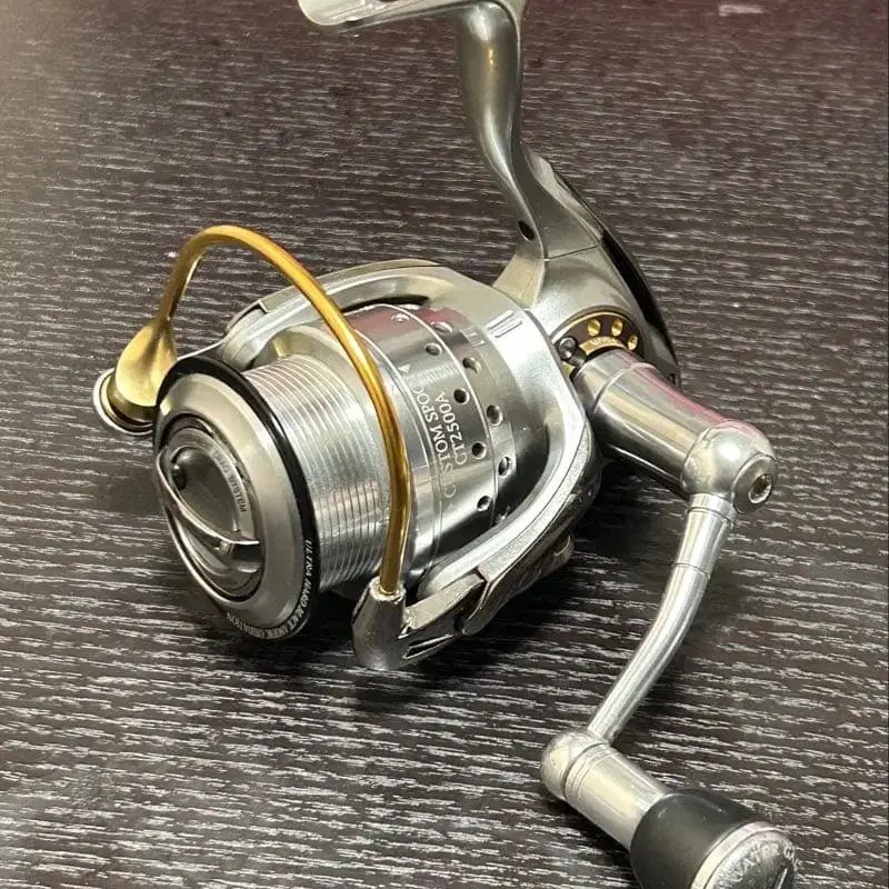 아이즈 팩토리에서 당시 바디만 출시되었던 이그지스트 하이퍼 커스텀 2500번 바디에 스튜디오 오션 마크의 핸들, 핸들 캡, 스풀을 장착했습니다. 부속물은 없습니다. 새상품으로 구매했지만 구매 시기는 기억나지 않습니다. 몇 년간 사용했고 최근에는 사용하지 않고 보관했습니다. 낚시릴 풋, 스풀, 핸들에 작은 흠집이 있지만 핸들 회전은 부드럽고 베일 내림도 없습니다. 소중하게 사용했기 때문에 골동품 치고는 새상품급이라고 생각하지만 어디까지나 중고품이므로 이해해 주시는 분의 구매를 기다립니다.