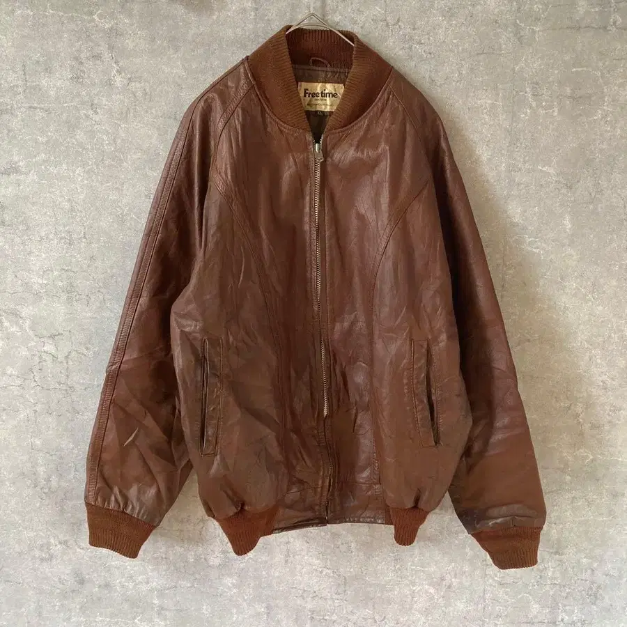 Vintage 리얼 가죽 싱글 라이더 자켓 XL 천연 가죽 브라운
