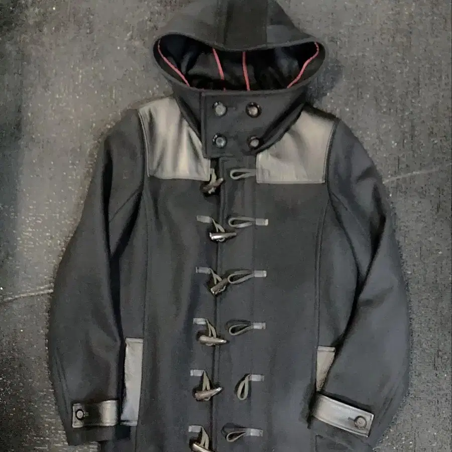 노아이디 가죽 울 더플 코트 블랙 S 지퍼 노아이디 소가죽 천연 가죽
