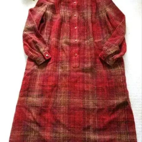 빈티지 셔츠 원피스 트위드 체크 울 쇼와 레트로 일본제