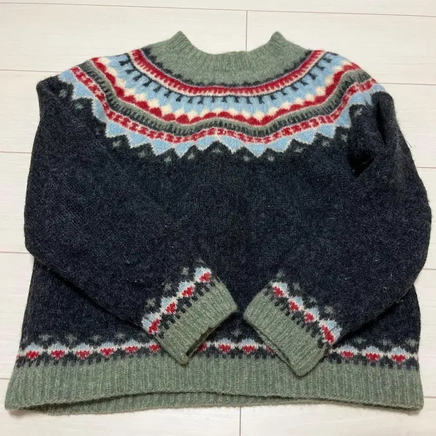빈티지 울 페어아일 패턴 긴팔 스웨터