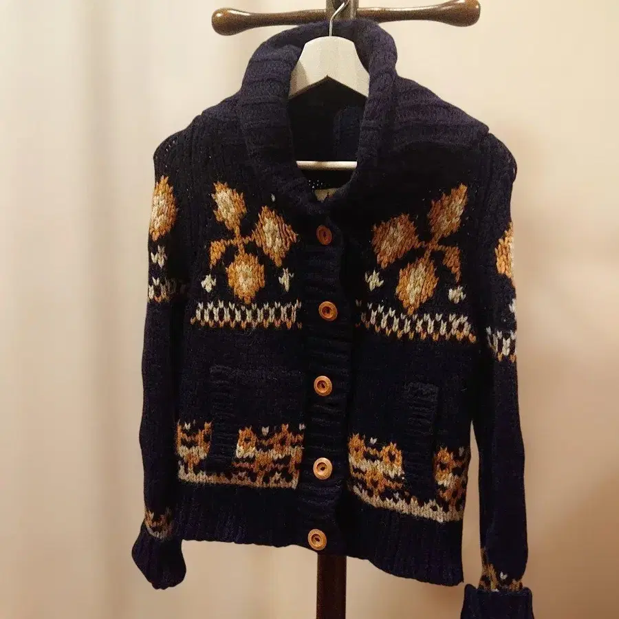 캐나다 코위찬 스웨터를 연상시키는 두꺼운 울 니트 디자인